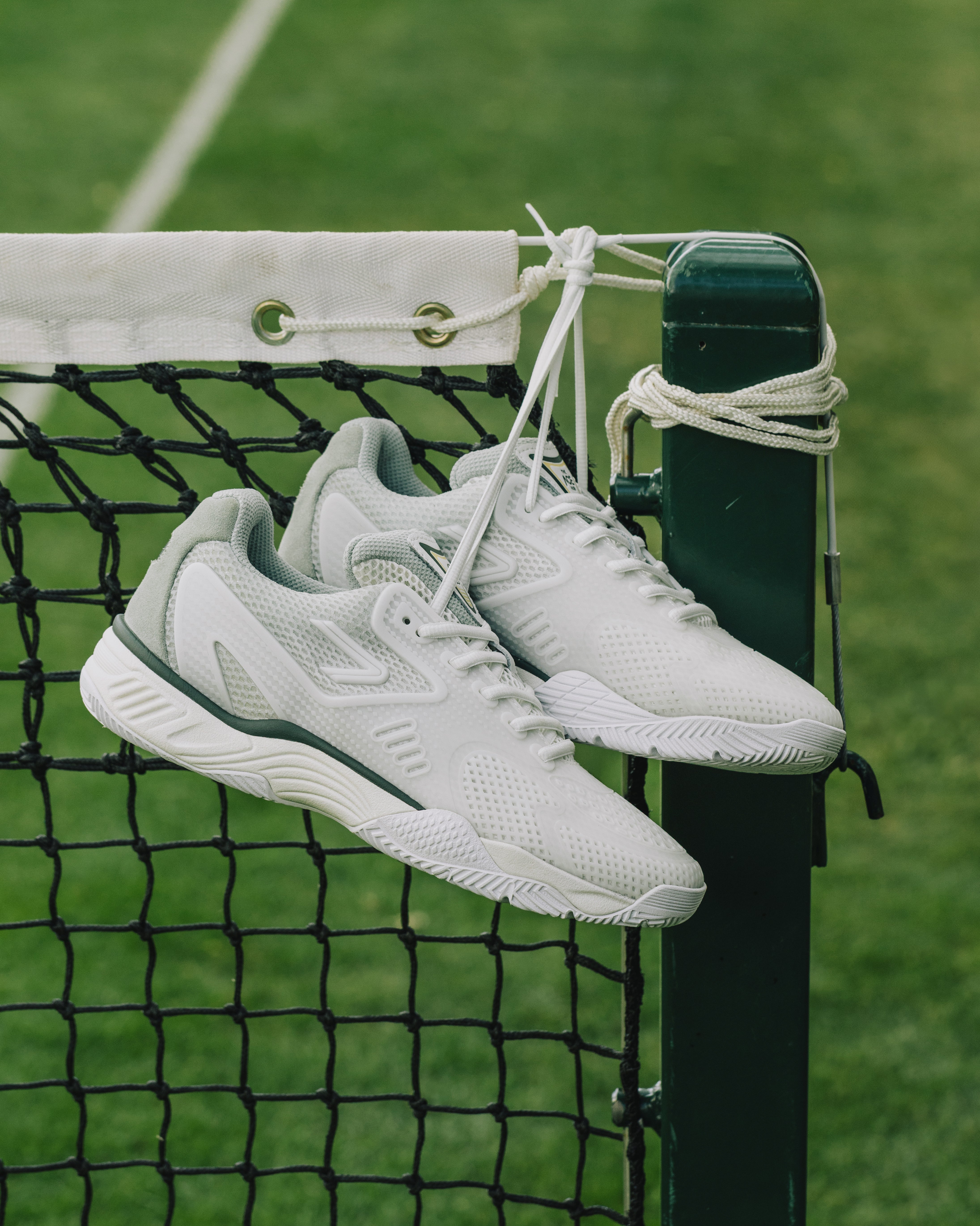 With its clean lines and retro design, The Shot reflects the founder’s earliest steps on the clay court. A subtle patch on the medial
